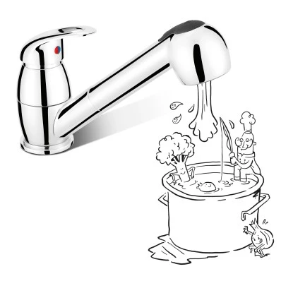 Die baliv Küchenarmatur KI-5011 schenkt dir und deiner Familie täglich Freude. Insbesondere ihre abgerundete, kompakte Form in Kombination mit dem offen gestalteten Hebel ist niedlich. Dank des integrierten Umstellknopfs kannst du schnell zur Brausefunktion wechseln. Die Brause dieser Armatur ist an einem etwa 1,5 m langen Schlauch befestigt. Du kannst sie herausziehen, um ganz komfortabel alles rund ums Waschbecken abzuspülen.