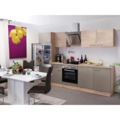 Die 270 cm breite Küchenzeile besteht aus (HxBxT):