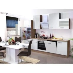 Die vorkonfigurierten Küchenzeilen überzeugen durch ihr Design und die vielfältigen Funktionen. Die Türen der Schränke sind sowohl für den links- als auch rechtsseitigen Aufbau vorbereitet, was Ihnen ein Höchstmaß an Flexibilität bei der Montage bietet. Die hochwertigen und pflegeleichten Kunststofffronten und die stabile Bauweise der Schrankkörper garantieren Ihnen lange Freude an Ihrer Küche. Eine Arbeitsplatte im passenden Design gehört bei dieser Küchenzeile mit dazu.