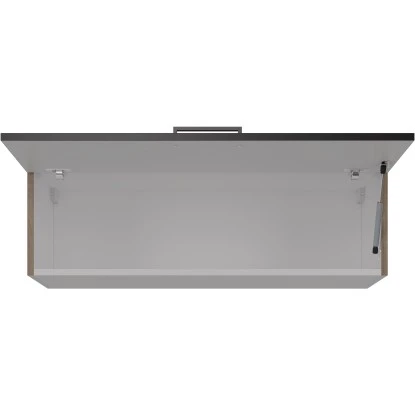 Der 100 cm breite Kurz-Oberschrank verfügt über eine Klappe mit Gasdruckfeder und weiß durch eine hochwertige Verarbeitung sowie Materialauswahl zu gefallen.
