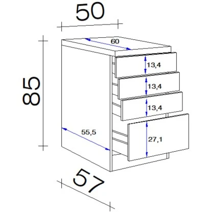 Flex-Well Exclusiv Schubkastenunterschrank Vintea 50 Cm Magnolie Matt-L. Oak