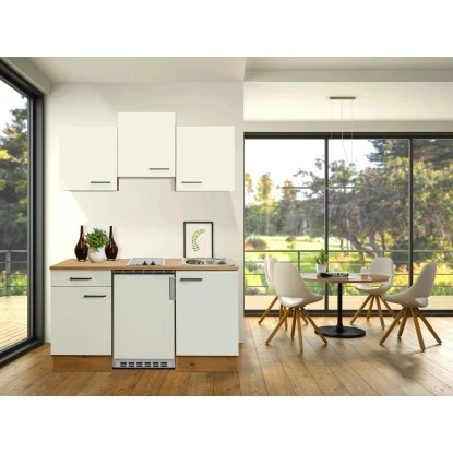 Ob erste Wohnung, Single-Haushalt, Ferienwohnung oder im Büro – diese kleinen Küchen von 150 cm Breite überzeugen durch ihr Design und die vielfältigen Funktionen. Die Türen der Schränke sind sowohl für den links- als auch rechtsseitigen Aufbau vorbereitet, was Ihnen ein Höchstmaß an Flexibilität bei der Montage bietet. Die hochwertigen und pflegeleichten Kunststofffronten und die stabile Bauweise der Schrankkörper garantieren Ihnen lange Freude an Ihrer Küche.