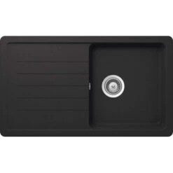 Das Spülen-Set Altena, bestehend aus der Granitspüle Altena D-100 und der modernen Küchenarmatur Simi, punktet mit seinem harmonischen, klassischen Design. Die Spüle findet ab einer Unterschrankbreite von 50 cm Platz in Ihrer Küche und fügt sich mit dem modernen Farbton Onyx-Schwarz perfekt in unterschiedliche Küchenstile ein. Die Armatur ergänzt das Set mit farbgleicher Optik in Onyx/Chrom, ist für Links- und Rechtshänder geeignet und ergonomisch einbaubar. Ihre hohe Auslaufposition bietet Flexibilität im Arbeiten mit Backblechen oder großen Töpfen.
