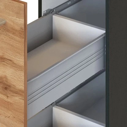 Die Küchenserie Sorrento besticht durch ihre 4 absolut trendstarken Dekorkombinationen, in denen immer das ausdrucksstarke Eichedekor eine entscheidende Rolle spielt. Durch eine Vielzahl an Zeilen- und Winkelkombinationen, die außerdem durch eine große Auswahl an Ergänzungsmöbeln komplettiert werden, ergibt sich ein breites Spektrum an Einrichtungsmöglichkeiten. Möchten Sie Ihren Backofen lieber autark in einem Hochschrank untergebracht haben? Benötigen Sie einen großzügigen Kühlschrank mit integriertem Gefrierschrank? Lagern Sie Ihre Vorräte gern in Auszügen und Apothekerschränken? Alle Schränke sind flexibel aufzustellen und die Türen sind wahlweise rechts oder links montierbar. Entscheiden Sie selbst- hier bleiben keine Wünsche offen.