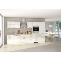 Die Serie Mailand zeichnet sich durch die hochglänzende MDF-Front, attraktiven Metallgriffen sowie der pflegeleichten Korpus-Kunststoffoberfläche aus. Die Schränke innen sind in Weiß gehalten. Zusätzlich findet sich hier eine Arbeitsplatte im Eiche Dekor ohne Ausschnitt für einen variablen Einsatz der Spüle.