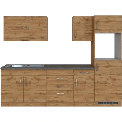 Die Held Möbel Küchenzeile Sorrento misst ca. B x H x T 270 cm x 200 cm x 60 cm und verfügt über eine 38 mm CPL-Arbeitsplatte mit Postformingkante.