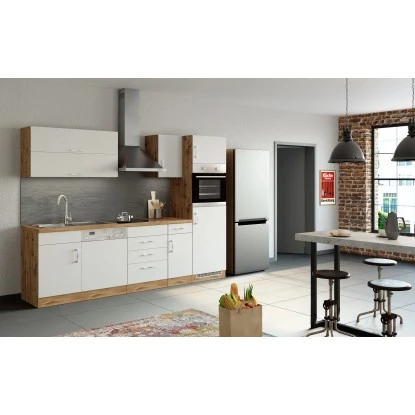 Die Küchenserie Sorrento besticht durch ihre 4 absolut trendstarken Dekorkombinationen, in denen immer das ausdrucksstarke Eichedekor eine entscheidende Rolle spielt. Durch eine Vielzahl an Zeilen- und Winkelkombinationen, die außerdem durch eine große Auswahl an Ergänzungsmöbeln komplettiert werden, ergibt sich ein breites Spektrum an Einrichtungsmöglichkeiten. Möchten Sie Ihren Backofen lieber autark in einem Hochschrank untergebracht haben? Benötigen Sie einen großzügigen Kühlschrank mit integriertem Gefrierschrank? Lagern Sie Ihre Vorräte gern in Auszügen und Apothekerschränken? Alle Schränke sind flexibel aufzustellen und die Türen sind wahlweise rechts oder links montierbar. Entscheiden Sie selbst- hier bleiben keine Wünsche offen.