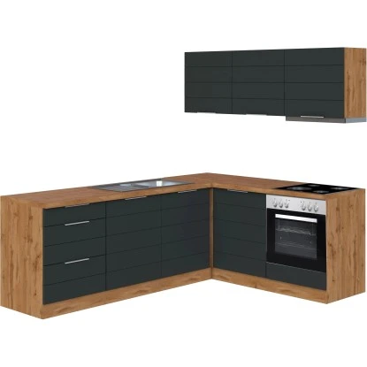 Die Küchenserie FLORENZ besticht durch ihre 2 absolut trendstarken Dekorkombinationen, in denen immer das ausdrucksstarke Wotan-Eichedekor eine entscheidende Rolle spielt. Elegante Metall-Griffleisten an hochwertigen MDF-Fronten mit Lisene in Mattweiß und Mattgrau werden mit einem ausdrucksstarken Eichedekor beim Korpus und der Arbeitsplatte kombiniert. So entsteht eine herausragende Optik, die genau den aktuellen Trend widerspiegelt. Eine Vielzahl an vordefinierten Zeilen und Winkel und verschiedenste Ergänzungsmöbel lassen keine Wünsche offen. In den Auszügen und hinter den Türen wird reichlich Stauraum für Küchenutensilien, Kochgeschirr und mehr geboten. Als Montagehilfe sind die einzelnen Schränke mit höhenverstellbaren Ausgleichsfüßen ausgestattet. Bestimmt werden Sie hier Ihre perfekte Küche finden!