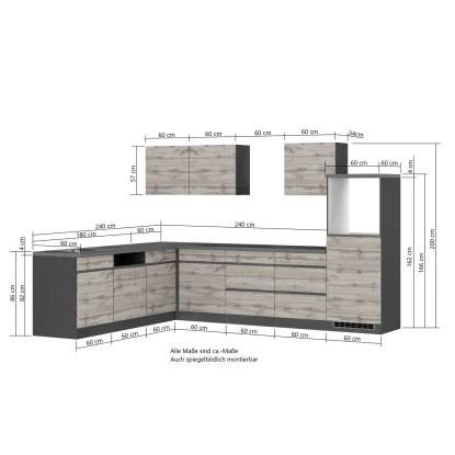 Held Möbel Winkelküche Turin 300 X 240 Cm Graphit-Wotaneiche Ohne E-Geräte