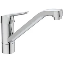 Die Ideal Standard Küchenarmatur Ceraflex ist der Allrounder unter den Küchenarmaturen. Sie finden Verwendung im Studentenwohnheim, der Büroküche oder in einer Wohnanlage. Die 38 mm FirmaFlow-Kartusche sorgt für eine außergewöhnliche hohe Lebensdauer. Dank Click- und BlueStart-Technologie lässt sich effizient Energie einsparen. Das moderne, schlanke Design gefällt auch nach Jahren und die große Modellvielfalt bietet Lösungen für jeden Anwendungsfall. Die Küchenarmatur Ceraflex von Ideal Standard zur Vorfenstermontage besitzt einen 360 ° schwenkbaren Auslauf mit Luftsprudler. Der Bedienungshebel aus Metall verfügt über eine permanente Rot- und Blau-Markierung für die Temperatureinstellung. Es ist eine FirmaFlow 38 mm Click-Kartusche mit keramischen Dichtscheiben enthalten. Die Kartuschenübersetzung ist aus Edelstahl gefertigt.