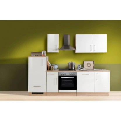 Menke Küchenzeile 270 Cm Weiß Hochglanz Sonoma-Eiche Nachbildung