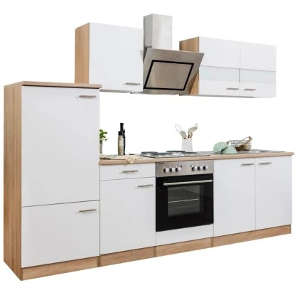 Respekta Economy Küchenzeile KB270ESWS 270 Cm Weiß-Eiche Sägerau