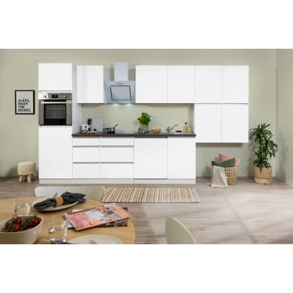 Respekta Küchenzeile GLRP380HWWM Grifflos 380 Cm Weiß Matt