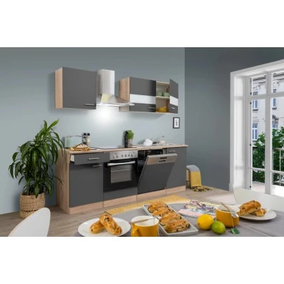 Respekta Küchenzeile KB220ESGC 220 Cm Grau-Eiche Sägerau Nachbildung Glänzend