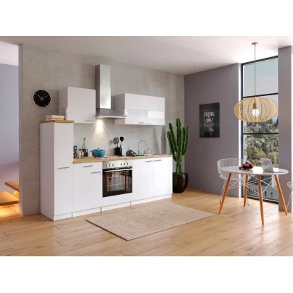 Die ideale Küche für das perfekte Kochvergnügen. Diese Respekta Küche definiert den Lebensraum Küche neu und verspricht Ihnen dank der bereits integrierten Elektrogeräte ein Höchstmaß an Komfort. Neben dieser hochwertigen Ausstattung, weiß die 240 cm breite Küche durch eine geradlinige Formgebung und eine attraktive Farbgestaltung im Design zu gefallen. Das schöne Erscheinungsbild wird durch die Fronten in verschiedenen Farben sowie den farblich perfekt abgestimmten Korpus besonders gekonnt in Szene gesetzt. Die geräumigen Schränke sorgen mit einer komfortablen Soft-Close Funktion für vielfältige Stauraummöglichkeiten.