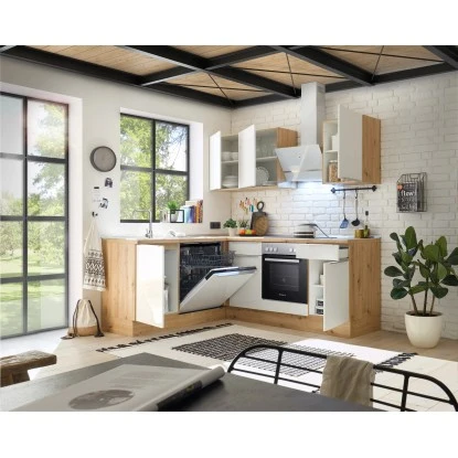 Die Respekta Küchenzeile Marleen ist in verschiedenen Farben erhältlich und schafft durch den Materialmix von Elementen in Holz- und Griffleisten in Aluminiumoptik ein modernes Design. Die Schränke bieten Ihnen viel Stauraum und schließen dank der Soft Close Funktion besonders geräuscharm. Unebenheiten im Boden gleichen Sie mit den höhenverstellbaren Füßen ganz einfach aus.