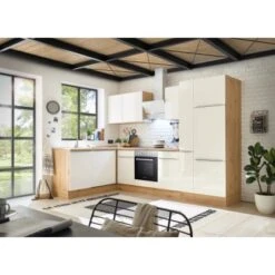 Respekta Küchenzeile Marleen 310 Cm Artisan-Eiche Weiß Hochglanz Winkel