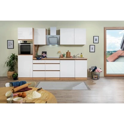 Sie wollen Ihrer Küche zu neuem Glanz verhelfen, haben aber erst kürzlich neue Elektrogeräte gekauft oder finden einfach nicht die richtige Küchenzeile mit bereits integrierten Elektrogeräten? Dann ist die grifflose Respekta Premium Küchenzeile ohne E-Geräte LBGLRP280HESW genau das Richtige für Sie. Die weißen Hochglanzfronten des Leerblocks verleihen Ihrer Küche ein modernes Design und zudem wirkt Ihre Küche durch die grifflosen Fronten ruhig und elegant. Die geräumigen Schränke sorgen mit einer komfortablen Soft-Close Funktion in dieser perfekt abgerundeten Küchenzeile für vielfältige Stauraummöglichkeiten für Vorräte und Küchenutensilien.
