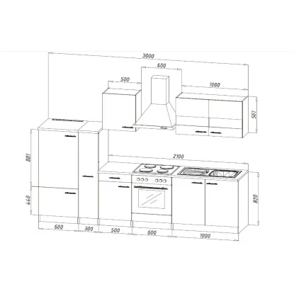 Die Respekta Küchenzeile ohne E-Geräte besteht aus (H x B x T):