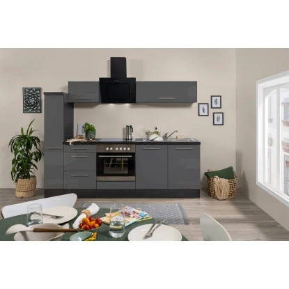 Respekta Premium Küchenzeile 240 Cm Grau Hochglanz-Eiche Grau