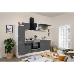 Respekta Premium Küchenzeile 240 Cm Grau Hochglanz-Weiß