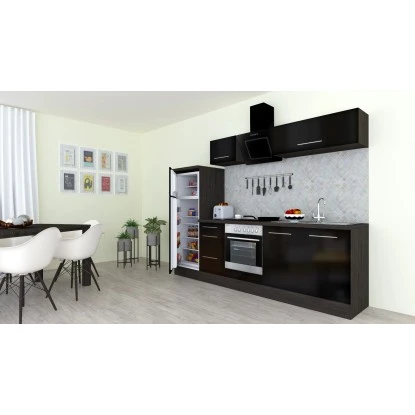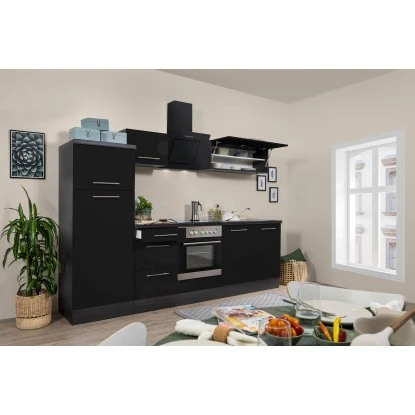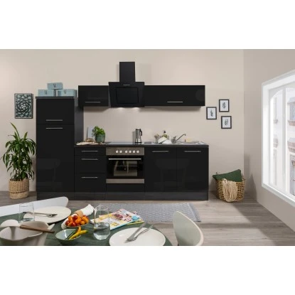 Respekta Premium Küchenzeile 270 Cm Schwarz Hochglanz-Eiche Grau