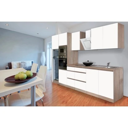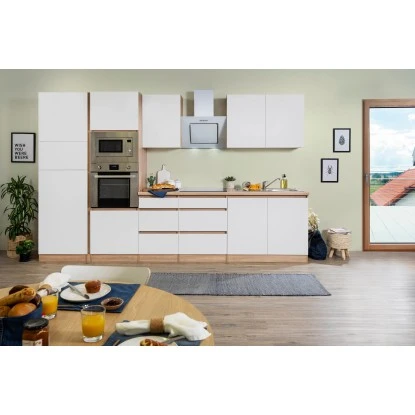 Respekta Premium Küchenzeile Grifflos 335 Cm Weiß Matt-Eiche Sägerau