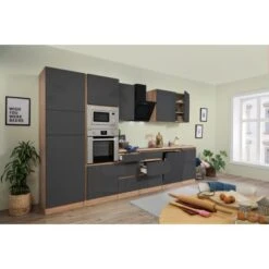 Respekta Premium Küchenzeile Grifflos 345 Cm Grau Hochglanz-Eiche Sägerau