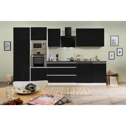 Respekta Premium Küchenzeile Grifflos 345 Cm Schwarz Hochglanz-Weiß