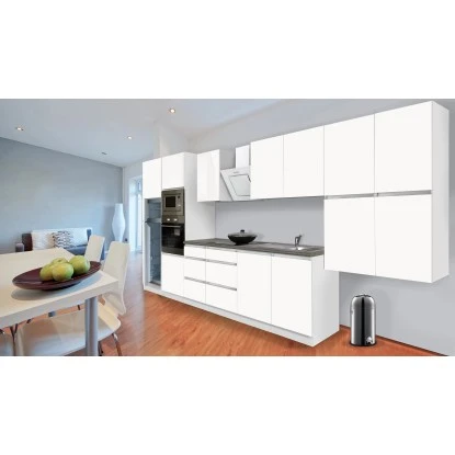 Respekta Premium Küchenzeile Grifflos 435 Cm Weiß Matt-Weiß