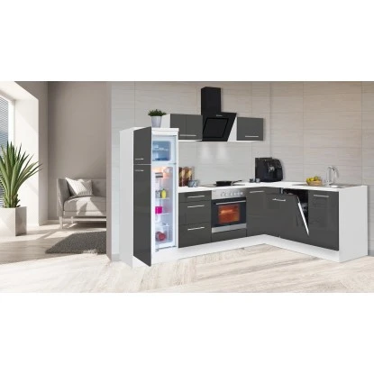 Respekta Premium Winkelküche 260 X 200 Cm Grau Hochglanz-Weiß