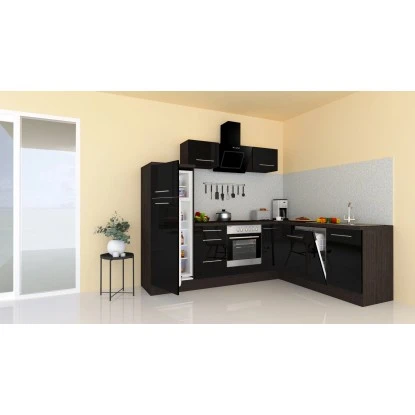 Respekta Premium Winkelküche 260 X 200 Cm Schwarz Hochglanz-Eiche Grau