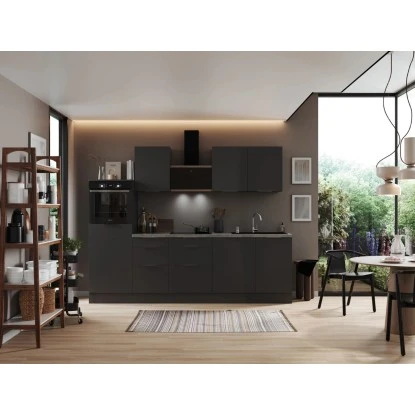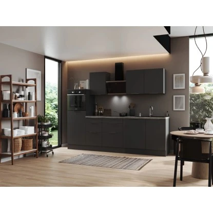 Die Respekta Selection Küchenzeile Elisabeth 280 cm bietet Ihnen alles, was Sie erwarten, um Ihren Traum von einer modernen und funktionalen Küche zu verwirklichen. Mit einer Arbeitshöhe von 91 cm und höhenverstellbaren Sockelfüssen ermöglicht sie Ihnen ein komfortables und ergonomisches Kochen. Dank der Schubkästen und Auszüge mit Vollauszug und Dämpfung, sowie der Glaseinlegeböden bei den Hängeschränken können Sie den Stauraum optimal ausnutzen. Profitieren Sie von der Lieferung fertig montierter Küchenschränke und erhalten Sie eine leistungsstarke und moderne Küchenlösung, die Sie über viele Jahre hinweg begleiten wird.