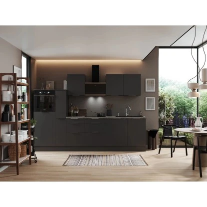 Die Respekta Selection Küchenzeile Elisabeth 310 cm bietet Ihnen alles, was Sie erwarten, um Ihren Traum von einer modernen und funktionalen Küche zu verwirklichen. Mit einer Arbeitshöhe von 91 cm und höhenverstellbaren Sockelfüssen ermöglicht sie Ihnen ein komfortables und ergonomisches Kochen. Dank der Schubkästen und Auszüge mit Vollauszug und Dämpfung, sowie der Glaseinlegeböden bei den Hängeschränken können Sie den Stauraum optimal ausnutzen. Profitieren Sie von der Lieferung fertig montierter Küchenschränke und erhalten Sie eine leistungsstarke und moderne Küchenlösung, die Sie über viele Jahre hinweg begleiten wird.
