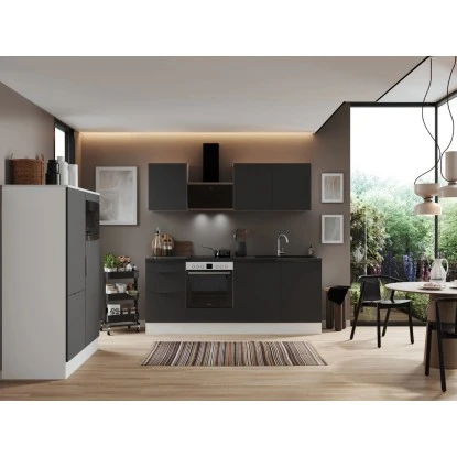 Die Respekta Selection Küchenzeile Elisabeth 340 cm bietet Ihnen alles, was Sie erwarten, um Ihren Traum von einer modernen und funktionalen Küche zu verwirklichen. Mit einer Arbeitshöhe von 91 cm und höhenverstellbaren Sockelfüssen ermöglicht sie Ihnen ein komfortables und ergonomisches Kochen. Dank der Schubkästen und Auszüge mit Vollauszug und Dämpfung, sowie der Glaseinlegeböden bei den Hängeschränken können Sie den Stauraum optimal ausnutzen. Profitieren Sie von der Lieferung fertig montierter Küchenschränke und erhalten Sie eine leistungsstarke und moderne Küchenlösung, die Sie über viele Jahre hinweg begleiten wird.