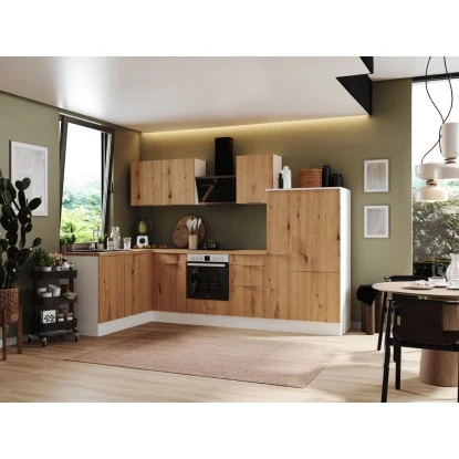 Die Respekta Selection Winkelküche Elisabeth 310 cm bietet Ihnen alles, was Sie erwarten, um Ihren Traum von einer modernen und funktionalen Küche zu verwirklichen. Mit einer Arbeitshöhe von 91 cm und höhenverstellbaren Sockelfüssen ermöglicht sie Ihnen ein komfortables und ergonomisches Kochen. Dank der Schubkästen und Auszüge mit Vollauszug und Dämpfung, sowie der Glaseinlegeböden bei den Hängeschränken können Sie den Stauraum optimal ausnutzen. Profitieren Sie von der Lieferung fertig montierter Küchenschränke und erhalten Sie eine leistungsstarke und moderne Küchenlösung, die Sie über viele Jahre hinweg begleiten wird.