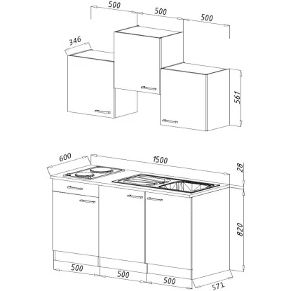 Respekta Singleküche Luis 150 Cm Weiß-Eiche Sägerau