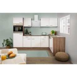 Respekta Winkelküche 280 Cm Weiß-Seidenglanz Eiche-York