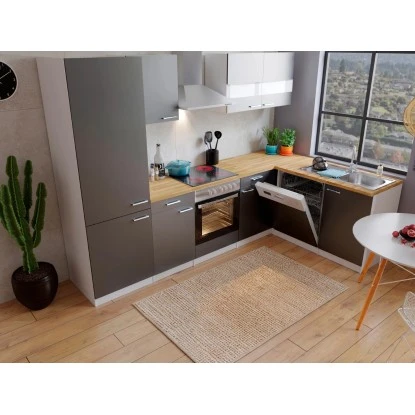 Respekta Winkelküche KBL280WGCGKEG 280 X 172 Cm Grau-Weiß-Butcher Nussbaum