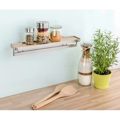 Das Wenko Gewürzregal der Premium-Serie ist aus edlem, gebürstetem Flachstahl. Alle Gewürze beim Kochen stets griffbereit aufbewahrt. Das Regal mit einer Ablagefläche (40 x 8 cm) aus modernem Bambus bietet ausreichend Platz für bis zu acht handelsübliche Gewürzbehälter. Natürlich finden auch Flaschen (Öl, Essig, etc.), weitere Vorratsdosen und viele Küchenhelfer eine attraktive Aufbewahrungsmöglichkeit in Griffnähe.